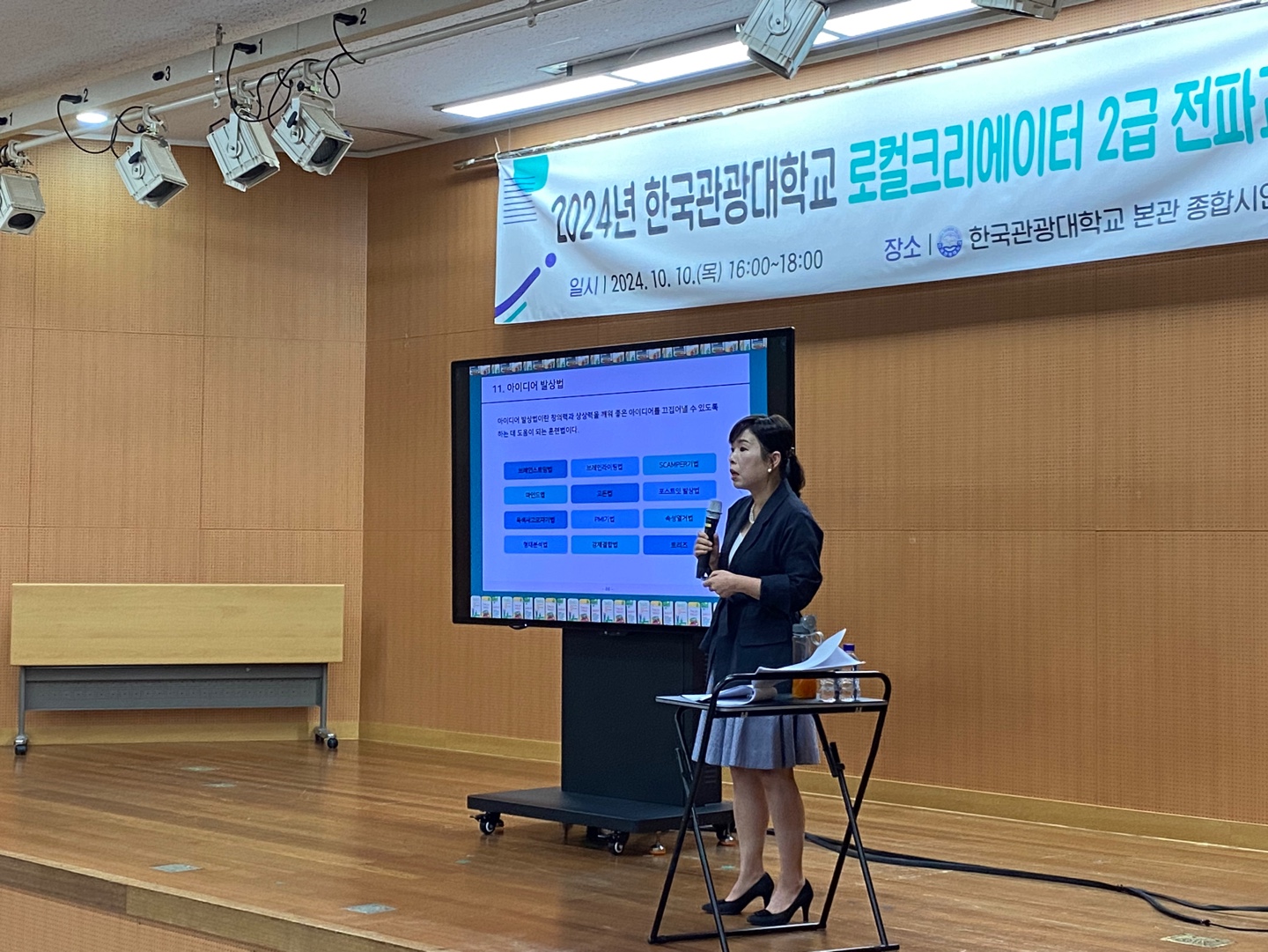 2024년 10월 10일(목) 한국관광대학교(총장 최형인)은 교수및 교직원을 대상으로 로컬크리에이터 2급 전파 교육과정을 성황리에 마무리하였다.