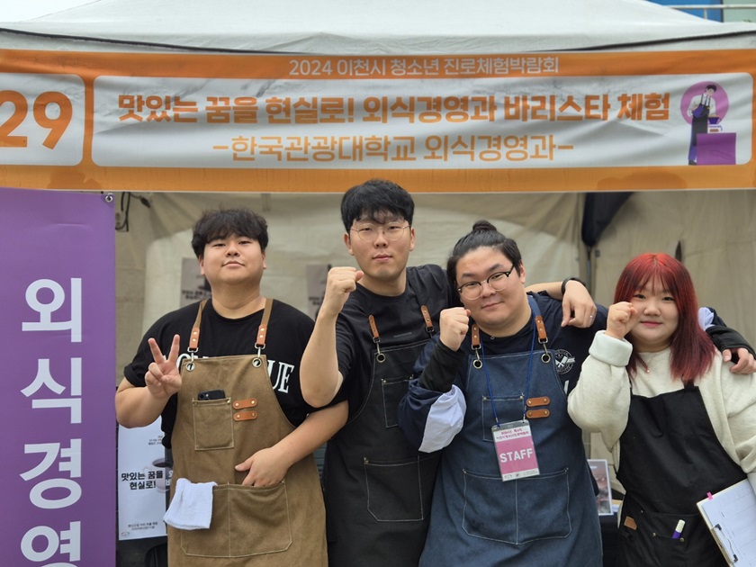 한국관광대학교(총장 최형인) 외식경영과는 2024년 10월 18일과 19일, 이틀간 열린‘이천시청소년진로체험박람회’에 참여하였다. 이번 박람회는 이천시와 경기도이천교육지원청이 주최하고, 이천시교육협력지원센터와 이천시진로체험지원센터가 주관하여 청소년들에게 다양한 직업 체험의 기회를 제공하고, 진로 탐색을 지원하기 위한 목적으로 마련된 자리이다.