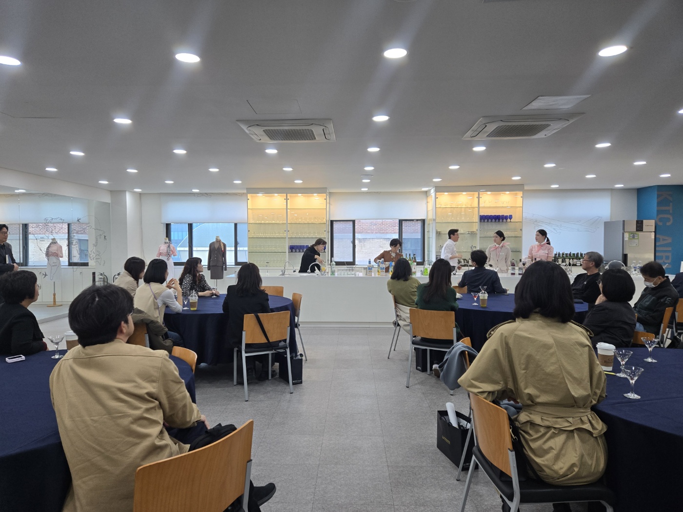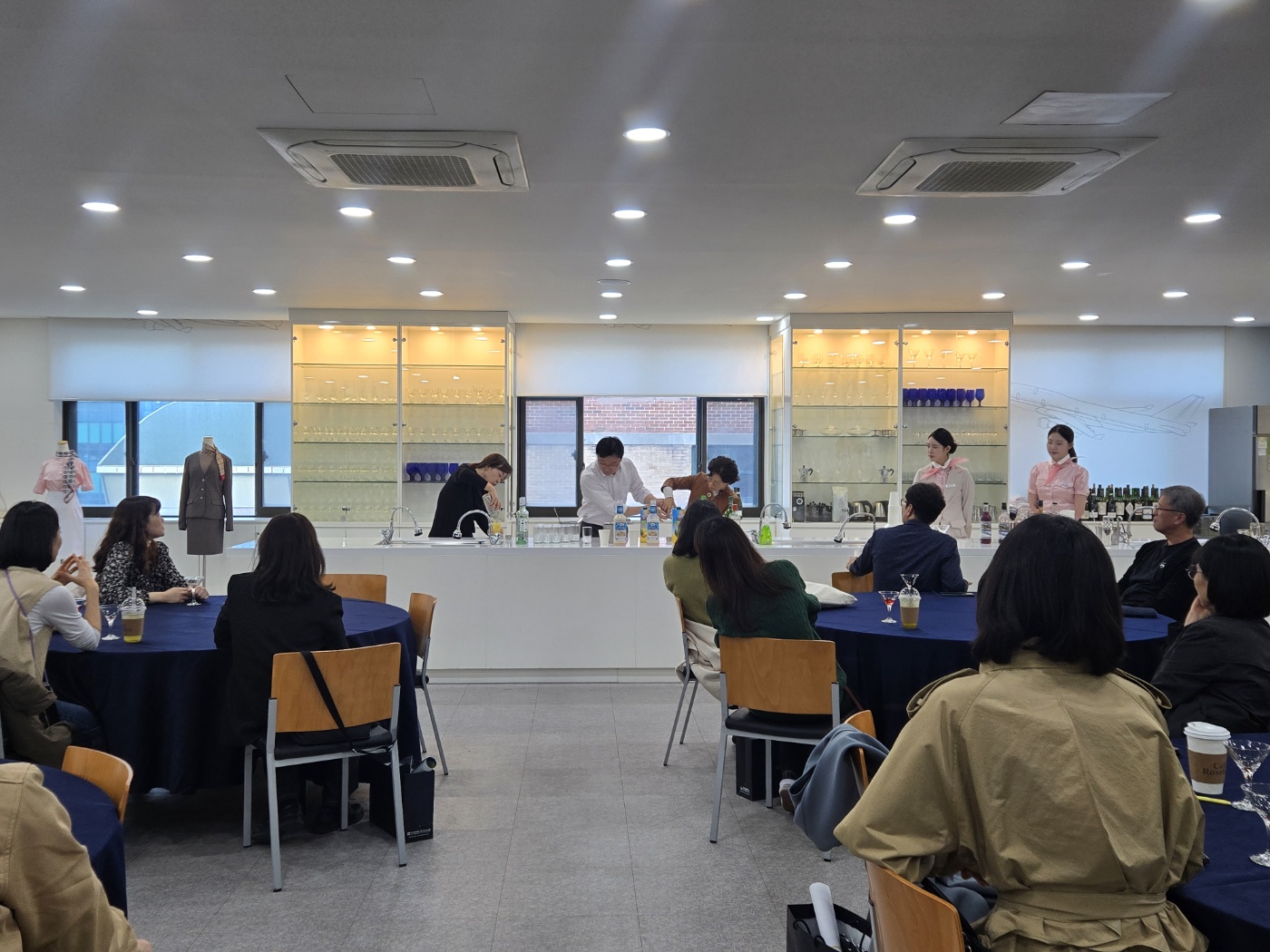 진로전담교사들은 대학의 항공서비스과 ‘기내음료준비실습’ 교육과정 참관으로 6대 베이스(위스키, 진, 보드카, 럼, 데낄라, 브랜디) 특성과 대표적인 혼성주의 특성을 이해하였으며, 2가지 칵테일(코스모폴리탄 및 피나콜라다)을 만들어 보는 학습 과정을 통해서 식음료 접객과 고객 응대 서비스에 관련된 관광산업 분야 직업 세계를 세부적으로 이해하는 계기가 되었다.