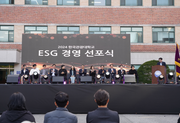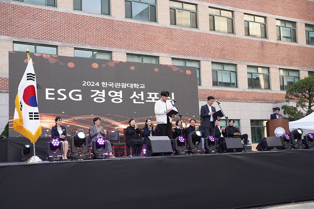 한국관광대학교는 교내 특설무대를 비롯하여 학술정보관 등에서 ESG 혁신 DAY를 열었다. 이날 ESG 선포식에는 이천시지속가능발전협의회 정철화 회장, 이천시청 최현희 관광과장, 이천시 청년지원정책위원회 이종경 위원장, 청강문화산업대학교 김성현 산학협력처•단장 등이 외빈으로 참석하였다.