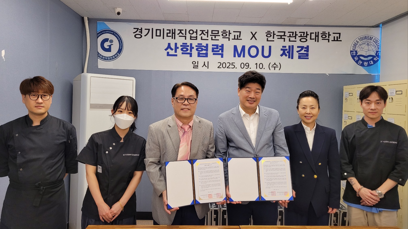 한국관광대학교(총장 김성용)는 2025년 9월 10일(수) 17시 30분 경기미래직업전문학교_의정부에서 한명규 부장과 우수 인력 양성 및 조리분야 취업 역량 강화를 위한 산학협력 협약을 체결했다.