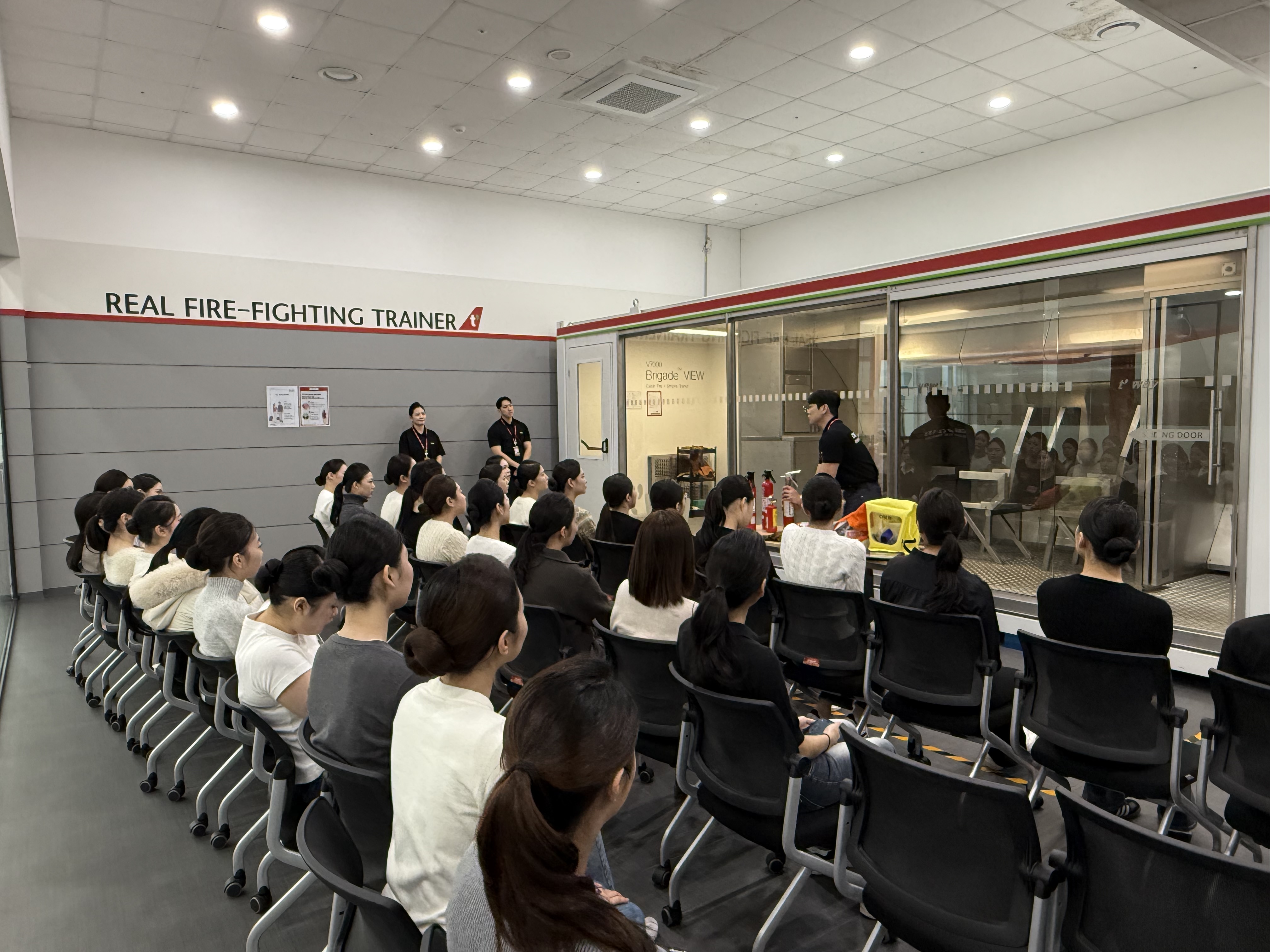 이어 항공안전 전문 교육시설에서 진행된 안전 훈련에서는 응급환자 발생 시 대처법을 배우는 응급처치 실습, 기내 보안 상황을 가정한 대응 훈련, 그리고 비상탈출 절차 실습까지 이어지는 종합 안전교육이 이루어졌다. 학생들은 실제 장비와 환경을 활용한 체험형 실습을 통해 항공승무원 업무가 ‘서비스’뿐 아니라 ‘안전’과 ‘위기 대응 능력’을 기반으로 한다는 점을 체감했으며, 비상 상황에서 필요한 판단력·관찰력·팀워크의 중요성을 확인하는 계기가 됐다.