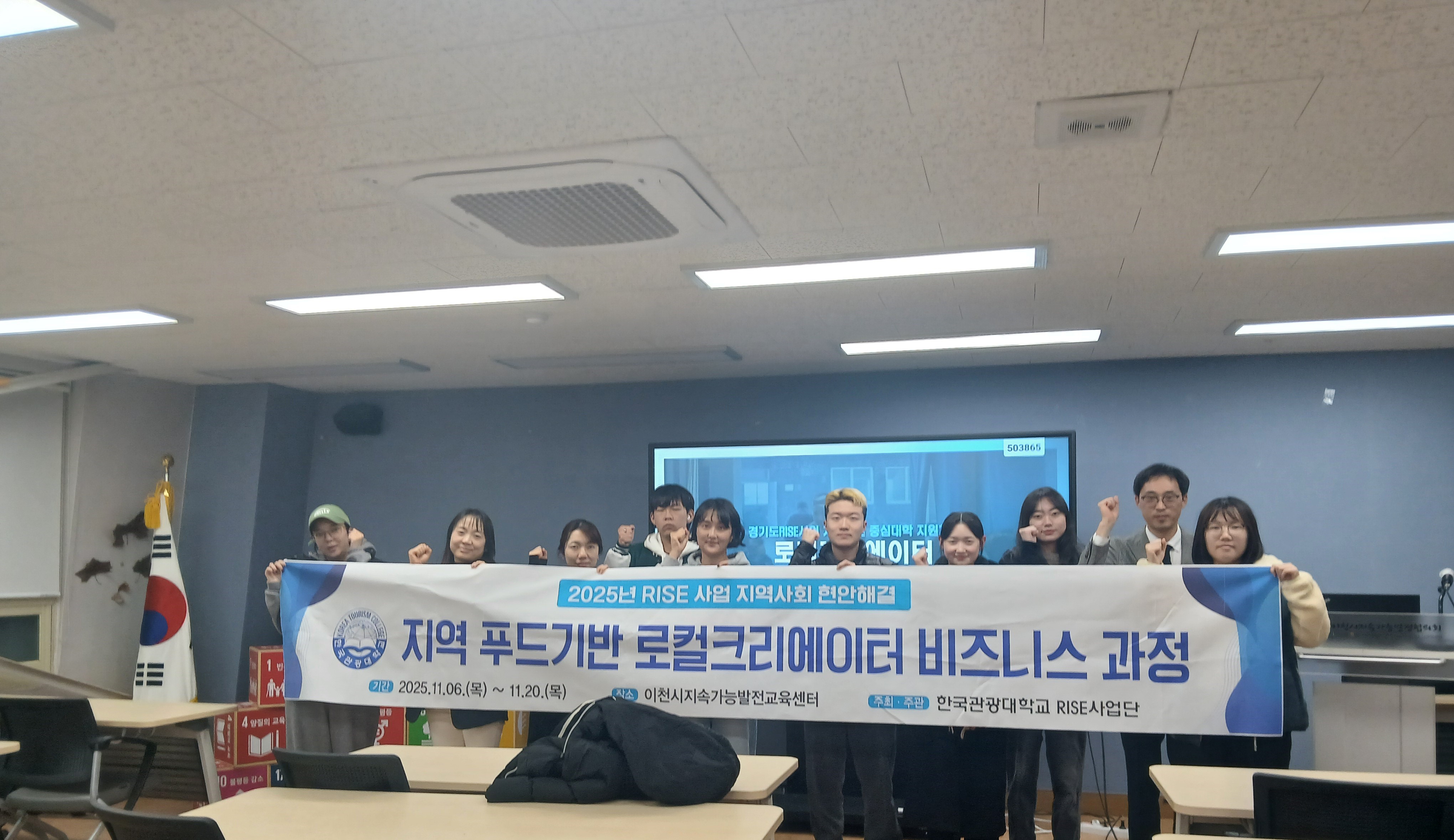 한국관광대학교(총장 김성용) RISE사업단은 지역사회 현안 해결과 로컬 비즈니스 역량 강화를 목표로 운영한 ‘지역 푸드기반 로컬크리에이터 비즈니스 과정’이 지난 11월 6일부터 20일까지 총 3회에 걸쳐 성공적으로 마무리되었다고 밝혔다.