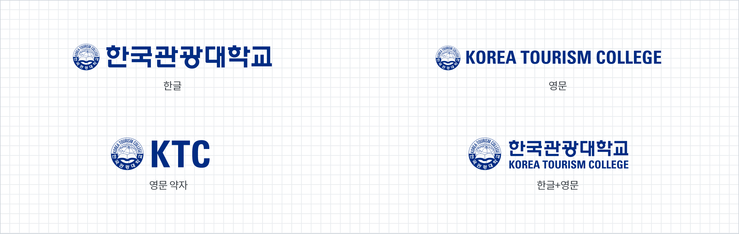 한국관광대학교의 통일된 이미지 형성을 위하여 심벌, 로고타입의 조합 배열 방법을 제시한 것이다. 다음은 심벌+한글로고타입, 심벌+한글로고타입+영문로고타입의 수평형 가로조합, 수평형 상하조합, 수직형 세로조합으로 글자의 간격 조정에 따라 각각 네 가지 방법을 제시하고 있다.